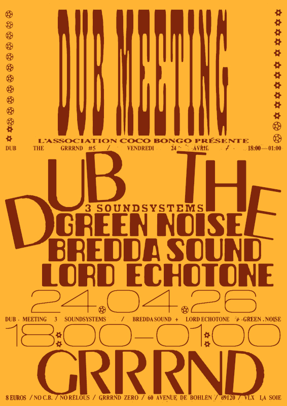 En cette -sombre- actualité politico-sociétal d’élections, il est temps de sortir de son hibernation, les beaux jours pointent leurs bouts de nez, le printemps fait sortir les bourgeons, …. et Grrrnd Zero s’apprête à accueillir le vendredi 24 Avril prochain non pas un mais 3 sounds system dub lyonnais!