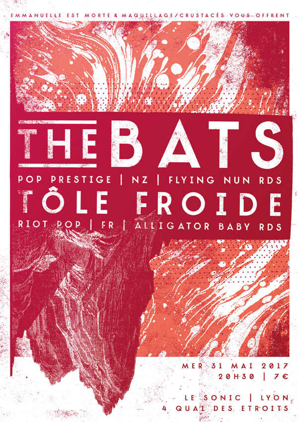 La Direction Evènementielle de l'Organisation Du Concert de The Bats à Lyon, Emmanuelle Est Morte & Maquillage/Crustacés.
